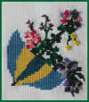 Kit Includes fabric, fibers and flower bud button. Separate chart pack includes chart and button. Extra button is available - click for buttons.